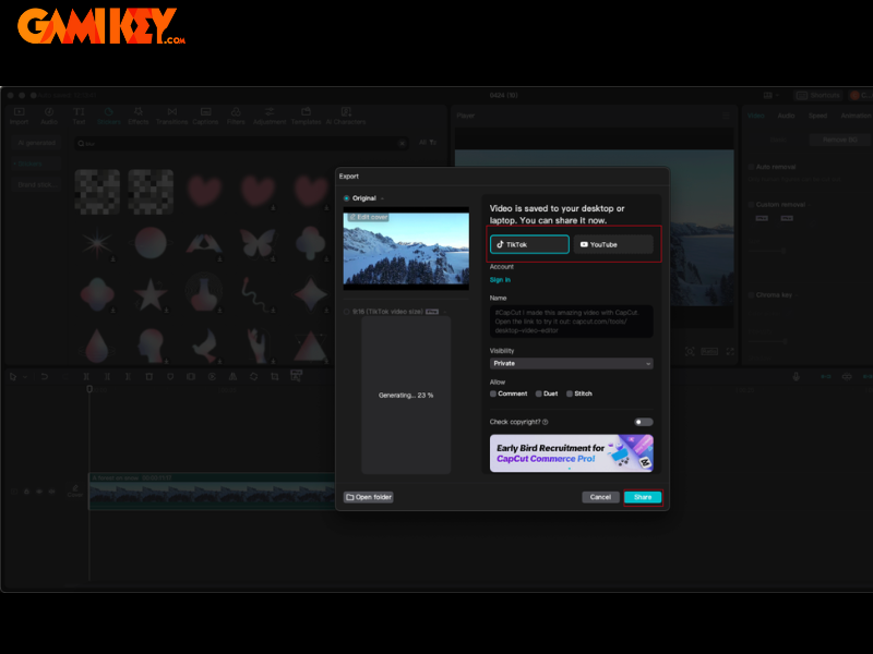 CapCut Pro – Member Slot là lựa chọn tiết kiệm giúp bạn trải nghiệm đầy đủ tính năng Pro như xuất video 4K, không watermark, hiệu ứng độc quyền. Mua tại Gamikey để đảm bảo chất lượng và sử dụng ổn định lâu dài.
